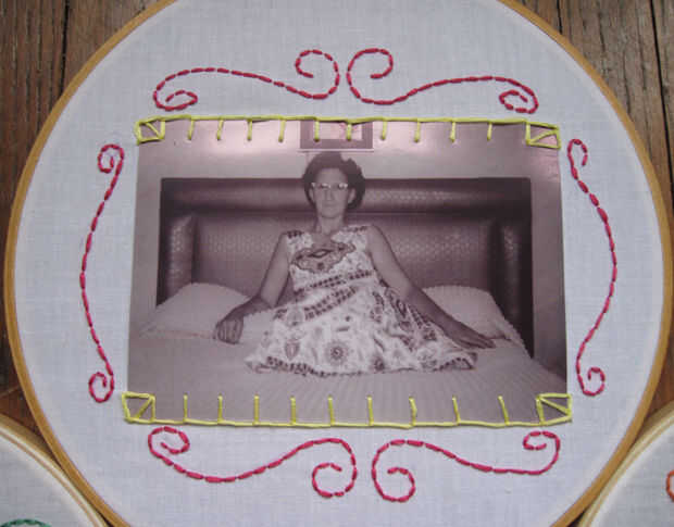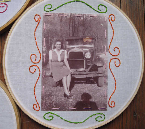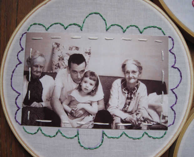 Se trata de una forma realmente fácil y atractiva para montar imágenes. Me encanta el look de aros de bordado, y usted puede personalizar el bordado de "marco" quieras. Además, utilizando bordados para enmarcar la fotografía es una manera muy agradable recordar mi abuela. Ella era una superestrella de coser!