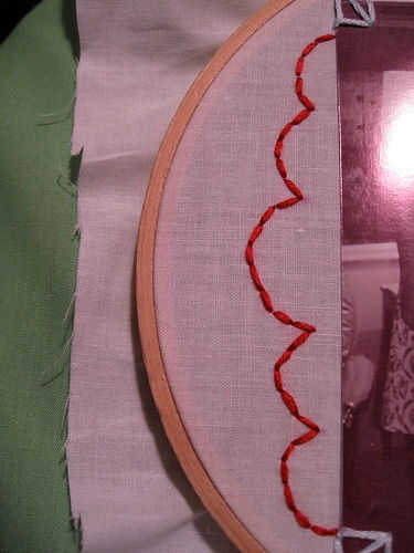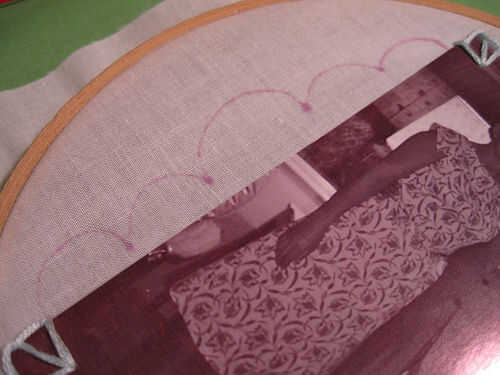 Puede utilizar patrones o a mano alzada los diseños sobre el uso de una pluma soluble del aire. Elegí aire soluble para este proyecto porque no podremos mojar este bordado para deshacernos de las marcas soluble agua. :)