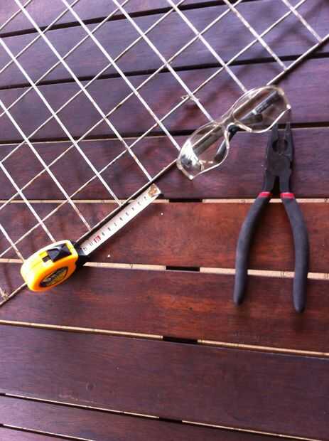 Esta alforja utiliza malla de alambre con aberturas cuadradas de 5 cm. Es fácil de doblar y cuando se corta para dejar una longitud de cable, esta longitud puede ser torcida firmemente con alicates para formar una combinación segura contra otro pedazo de alambre.