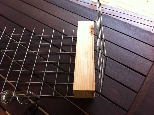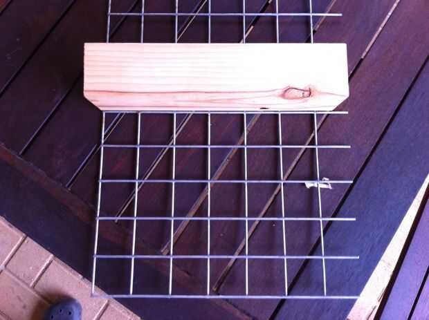 Para hacer el plegado fácil y más recto, con una robusta pieza de madera sobre la línea de doblez es necesario. El primer extremo 20 cm fue doblado primero (4 cuadrados de malla), seguido por el primer lado de 25 cm (5 cuadrados de malla), seguido por el segundo extremo y lateral, respectivamente.