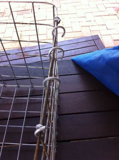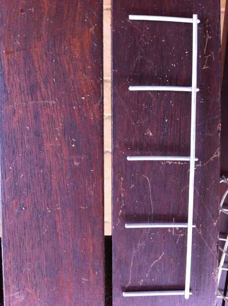Este paso es experimental. Aquí se utiliza una pieza con 5 cables. Uno en cada extremo se fija a la estructura de alambre. 3 en el medio están doblados a ganchos de forma que van sobre el portabicicletas.