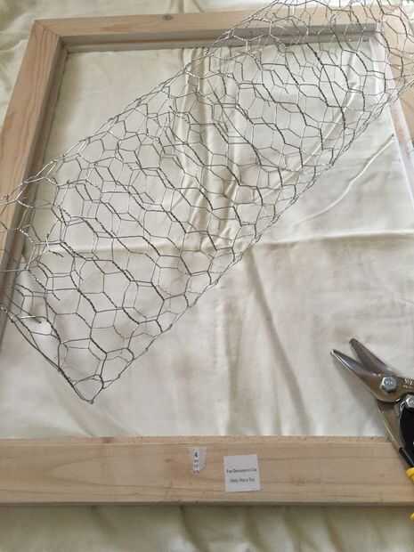 Una vez que su marco es seco (esperé 24 horas), tome el alambre de pollo y utilice su cortador de alambre para cortar el cable para adaptarse a su marco.