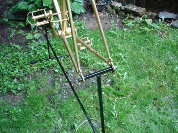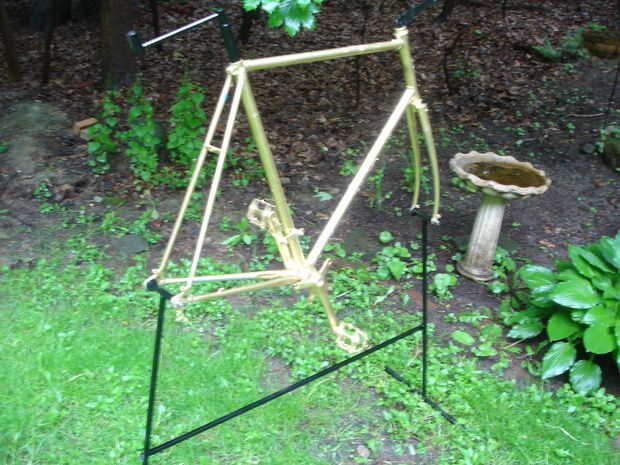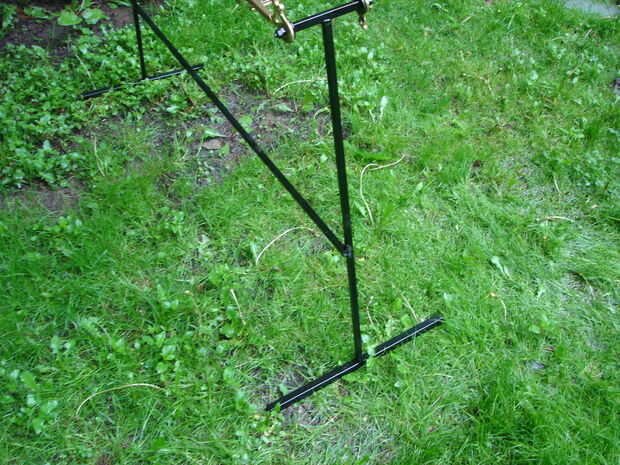 Un marco soporte soldado con autógena y unido a donde se fijan las ruedas.