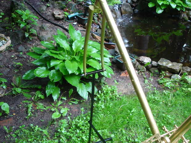 Luego todo fue colocado cerca de nuestro jardín de la roca/estanque y flores fueron colgadas en él...