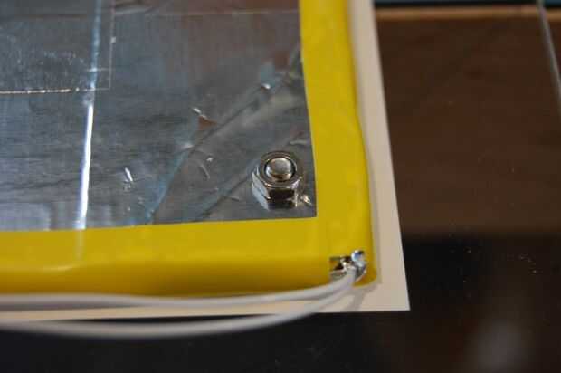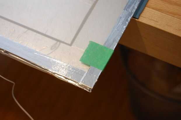 Las capas media e inferior deben ser del mismo tamaño. Con cinta de electricista, conéctelos juntos por doblar la cinta alrededor de los bordes. También se puede utilizar la cinta de aluminio, pero es propenso al daño.