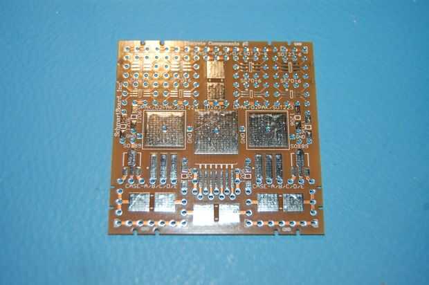 Por desgracia el sensor capacitivo solamente está disponible como un paquete de montaje en superficie WSON aficionados hostiles. Sabía que yo no tendría tiempo para hacer un PCB, usé un tablero de prototipo poco conveniente de SchmartBoard. Tiene almohadillas compatibles con el paquete WSON, así como numerosos otros tipos de paquetes. Simplemente elegí componentes que cabrían en los diseños de teclado disponibles en el tablero.