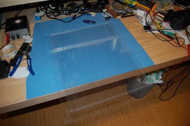 -Tres hojas de la hoja de acrílico, Lexan o policarbonato, por lo menos 2,5 mm de espesor. Dos deben ser las mismas dimensiones que el cartel, y uno debería ser 2 pulgadas más grandes en cada dimensión.