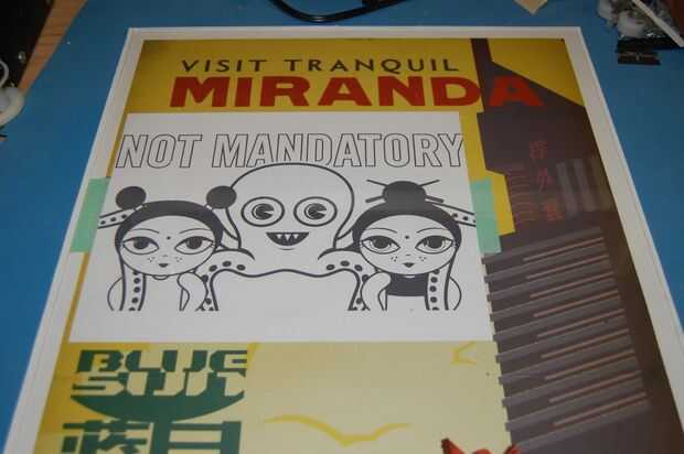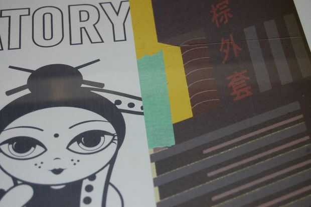 Empecé haciendo la imagen agarró a blanco y negro, ya que el grabado es un proceso de Carnby - grabado o no grabado. También quité todo el fondo, dejando sólo el texto, el pulpo y las dos chicas. Impreso en una hoja de papel de 8,5 x 11, que ajusta perfectamente en el espacio casi vacío amarillo del cartel.