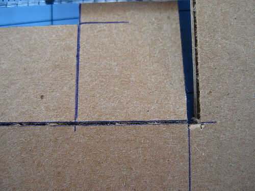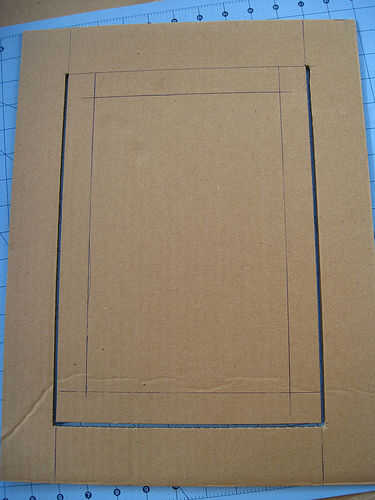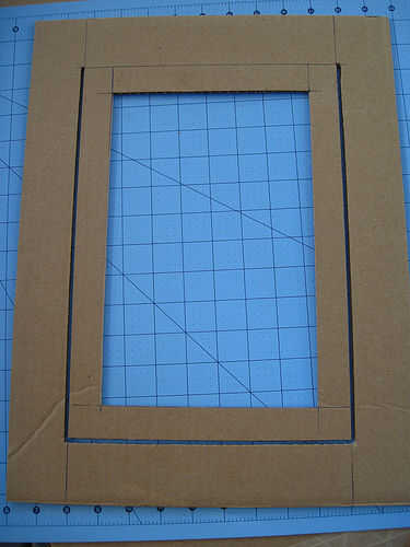 Dentro de la pieza con bisagras, medir una pulgada en cada borde y marque para que forme un rectángulo más pequeño. Cortar los cuatro lados de este modo que hay un gran agujero en el medio.