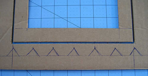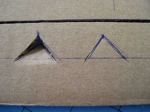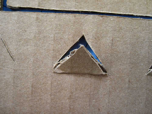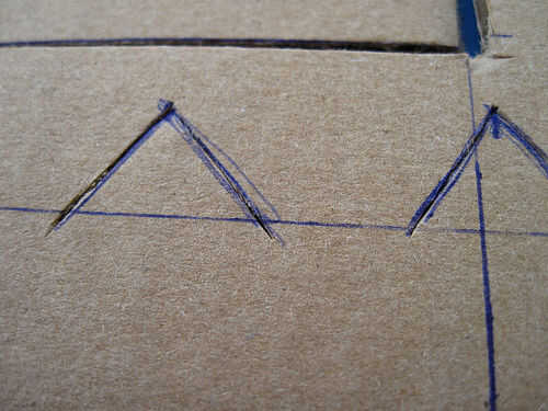 Puntuación muy ligeramente en la parte inferior de los triángulos que se doblan hacia fuera.
