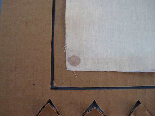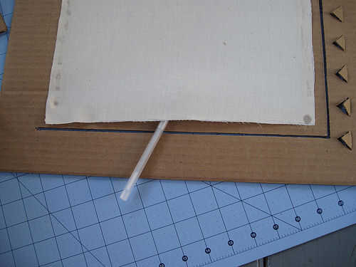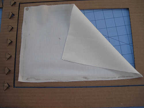 Luego, tirando de la tela tensa, trabajan alrededor de la estructura en un movimiento hacia la derecha o hacia la izquierda, pegado en pequeñas secciones. Asegúrese de que cada vez que te pegue también sostener a la tela en su lugar dejarla secar correctamente. La última parte será complicada, por lo que sugiero hacerlo todos a la vez.