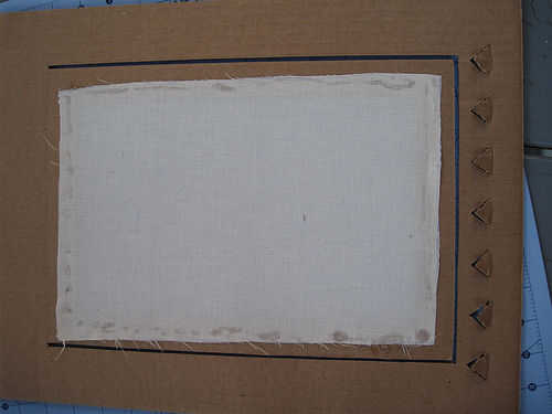 Coloque a la tela sobre el marco para hacerse una idea de la colocación correcta.