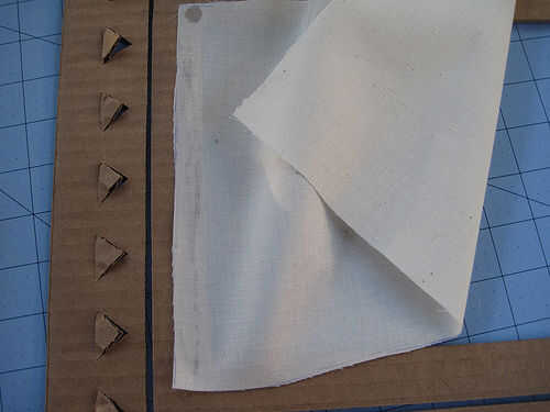 Paso 8: Estiramiento y pegamento de la tela en la parte inferior con bisagras marco.