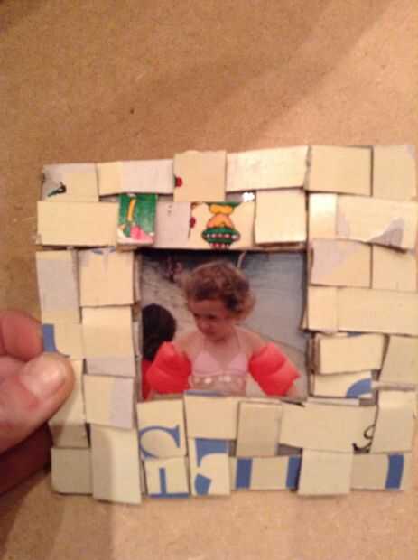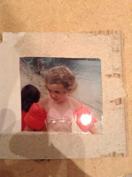 Utilizando la pieza cuadrada de cartón cinta la foto en el centro. La pieza cuadrada de cartón con tu foto en ella a la parte posterior del marco con cinta adhesiva de la cinta y listo, el cuadro se completa.