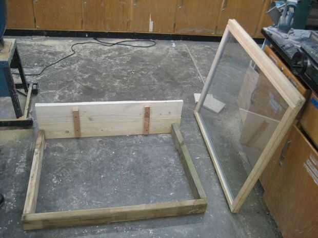 Lo único que realmente necesita de un marco frío es la ventana. Lo que construcción el marco de es totalmente hasta usted; puede ser metal, madera, piedra, yeso viejo, cualquier cosa puede hacer un marco de realidad. Terminamos usando los materiales que hemos recogidos en un centro llamado a Allen de Ottumwa, IA (¡ gracias Allen y Beth!) los materiales de construcción recuperados y reciclados: