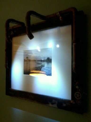 Después de que quita todas las piezas delicadas y puso al lado en un lugar seguro me pone el marco de madera en mi entrada de cemento y utiliza un trineo de mano cinco libras para martillo en diferentes formas. Usé una vieja hoja de sierra circular, y otras piezas de chatarra de metal había tendido en el garaje, entonces usa un sonajero pueden de pintura negro brillante para llenar todas las abrasiones que pongo en él. Después de que seque utilicé dos ochenta y 120 papel de grano arena para eliminar el brillo y tomar la fábrica de acabado para el grano de madera en lugares alrededor de los bordes. Entonces usé aceite motor viejo como una mancha para las áreas de limpia arena. Era barato y funcionó muy bien a la edad de la madera.