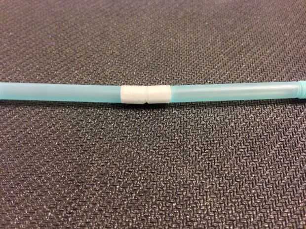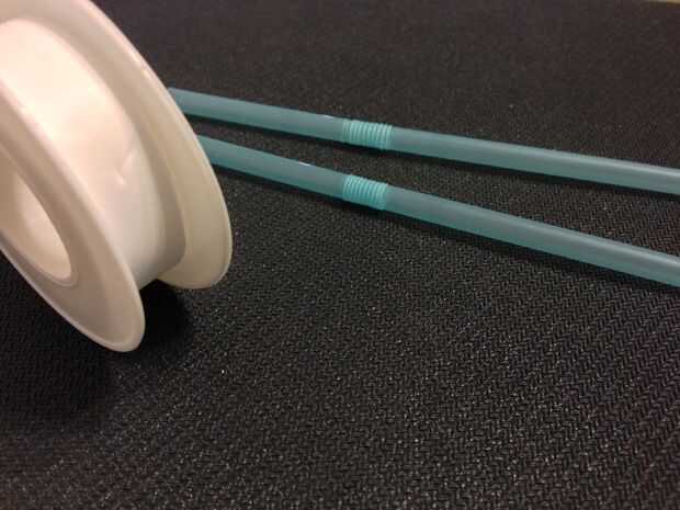 Podemos hacer que una bisagra dos paja conectando dos pajas normales con una capa de cinta de teflón y una capa de cinta de embalaje regular. El propósito de usar cinta de teflón es crear una capa de prueba de agua entre dos pajas y la cinta de embalaje.