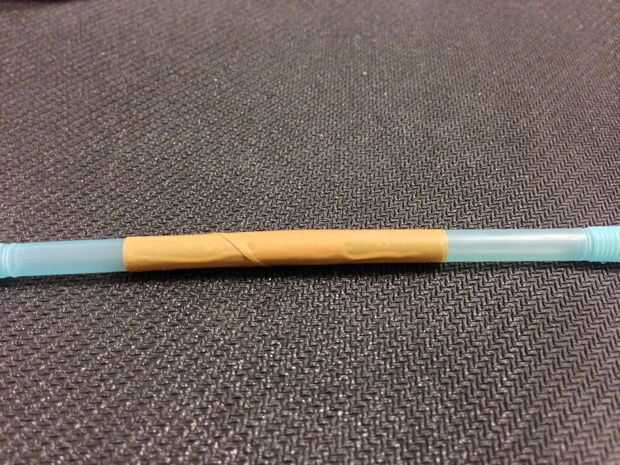 Una pajita flexible normal tiene solamente una bisagra tipo concertina en la parte superior, y es todavía no lo suficientemente flexible como para orientar y cambiar el flujo de aire. Lo que necesitamos es una paja con al menos dos bisagras.