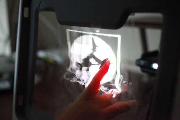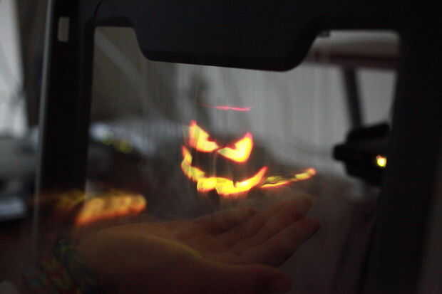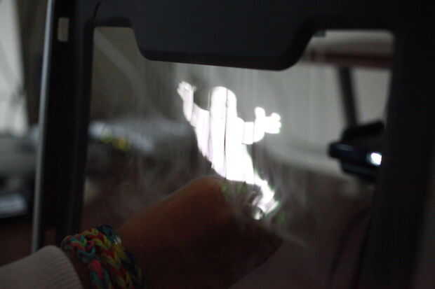 Aunque no podemos caminar a través de la pantalla de niebla a la escala actual, podemos tocar el aire fresco e interactuar con la imagen. Es un gran regalo de Halloween para los niños.