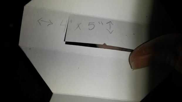 Luego corté una aleta en mi segunda pieza de 4 por 5 pulgadas. Este compartimiento no cruza cualquiera de las solapas cuando pegado para que no adhiera las piezas todavía.