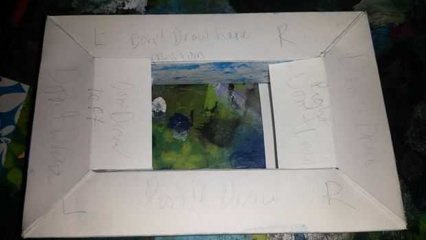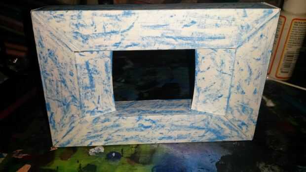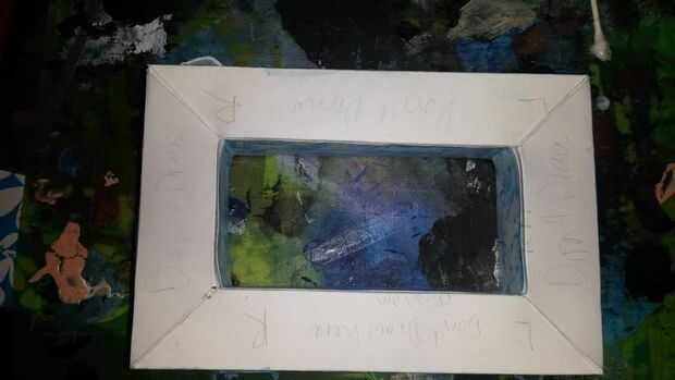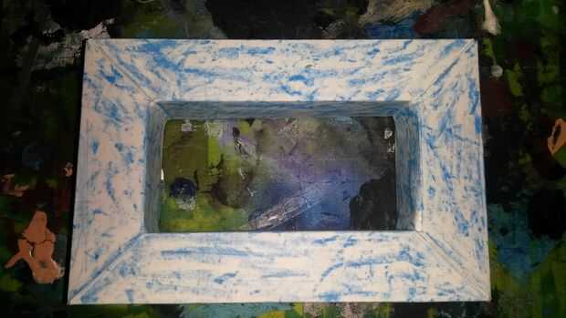 Ahora debe tener un amplia 4 por 6 pulgadas marco de acabado de 1 pulgada con un agujero en el centro. En las dos últimas fotos que se muestra se puede ver desde el frente (lado blanco) y de la parte posterior (lado azul)