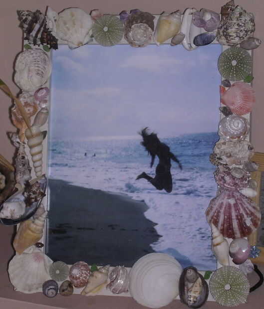 1. Fuentes: Plano marco, vidrio de mar conchas, laca (opcional), pistola de pegamento caliente. 2. Limpie la cáscaras y luego inmersión en laca (o pintura con esmalte de uñas claro) si quieres fortalecerlas. 3. Utilice pegamento caliente para fijar conchas para el marco.
