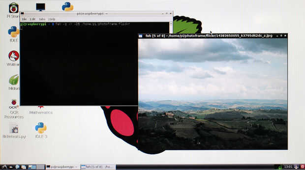 En la documentación de la feh, puede ver las opciones disponibles para el visor de imágenes. Utiliza la pantalla completa, retraso, completo zoom, cursor oculto y aleatorizar opciones. Esto significaba que mi línea de código se parece a "feh -F -Z - z -Y-D5 /home/pi/photoframe/flickr" (la ruta del archivo es la ubicación donde guardar las fotos saque de Flickr). Para la prueba, utilicé un retardo de sólo cinco segundos por lo que puedo comprobar que funciona sin necesidad de esperar. La estructura final tendrá un retraso de más de cinco minutos o menos. Feh es ejecutar directamente desde la ventana de terminal, así que usted puede probar si funciona muy fácilmente.