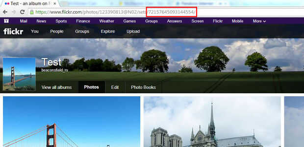 El código de python utiliza todas las fotos en un álbum, así que un álbum con todas las fotos al público (de lo contrario usted no puede acceder a ellos sin información de la cuenta). Ir a la página de álbum y escriba el número de id del álbum (situado al final de la URL - véase la foto) así que puede usar en el código python para el álbum de referencia.