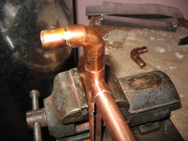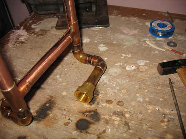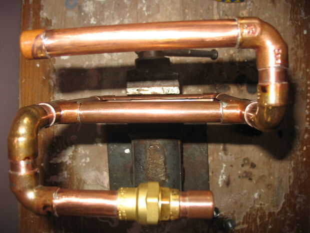 1. Connecttwo pedazos de tubo de cobre de 3,5 cm, dos piezas de tubo de cobre de 3 cm y 2 codos como se hizo en la segunda foto.