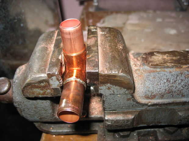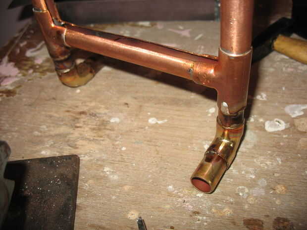4. utilizando el tubo de 6 cm y 2,5 uno, los conectadores de cobre amarillo y una gorra de la soldadura como en el cuadro 5-th. La soldadura a la pierna restante.