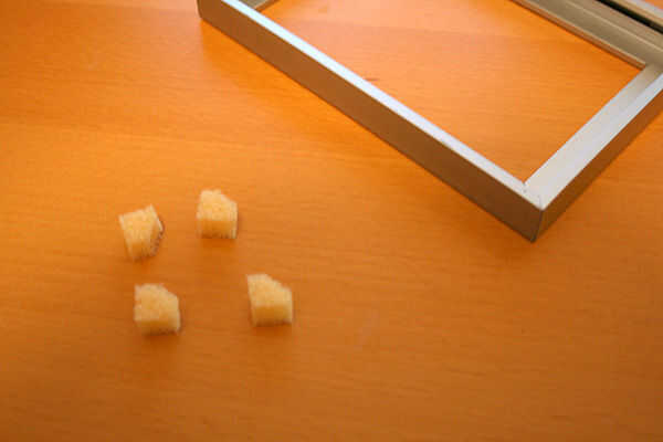 1. cortar la espuma en pequeños cuadrados para el ajuste agradable en las esquinas (ver foto).