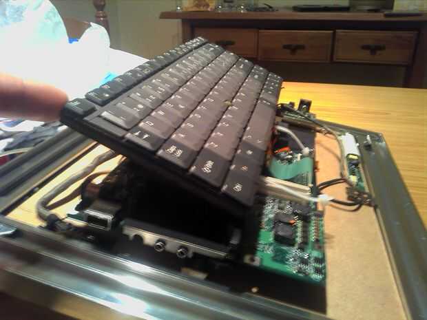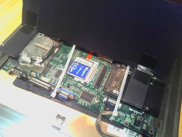 Como el disco duro hace un inquietante (para mi, soy sensible a muy bajas y muy altas frecuencias) gimoteo y disfrutar de silencio, lo reemplacé con una 512MB compact flash tarjeta en un adaptador IDE.