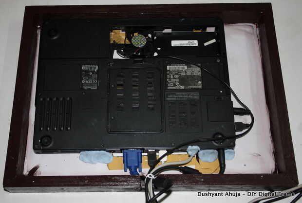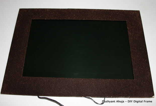 - La última parte fue montaje de la pantalla LCD en el marco – esto es el paso más delicado y debe hacerse muy cuidadosamente. He intentado pegarlo con araldite, quickfix, FeviBond, et al. Sin embargo logró finalmente con la cinta fuerte de 2 caras. Fue capaz de comprar un rollo de una tienda de accesorios de coche. No use la que consigues en las tiendas de artículos de papelería-que no funciona y la pantalla LCD puede deslizarse después de algún tiempo.