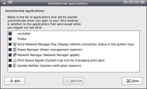 6. Agregar a firefox como un programa de arranque: aplicaciones > Administrador de configuración > aplicaciones Autostarted (el comando es: firefox).