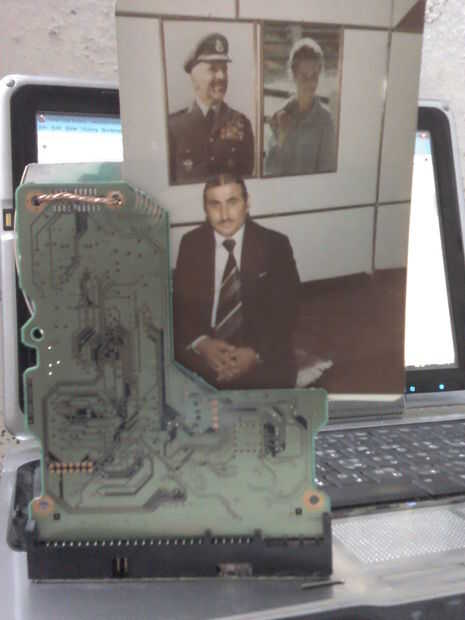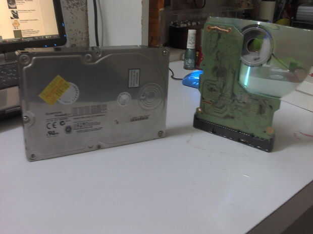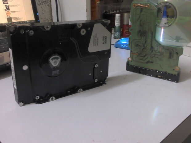 través de conductores del tornillo me quité la placa de circuito que cubre un lado del disco duro y me encontré con este increíble combinación de colores de verde y cobre... era no inteligente para poder utilizarlo para algo friki y hermoso!