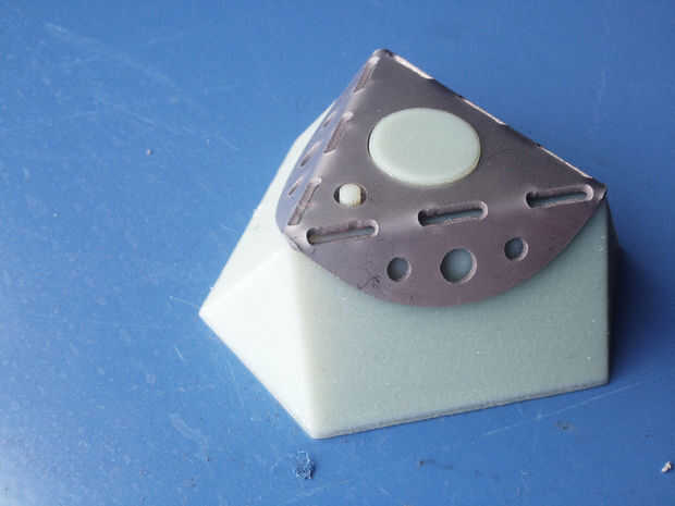Cuando empecé, estaba usando un tornillo de banco, bloque de aluminio y un mazo de goma. La plantilla impresa 3D anterior era genial para la comprobación de los ángulos. El cortados largo agujeros actúan como una perforación para que sea fácil doblar la en un vicio. Pero si usted puede conseguir sus manos en un doblador apropiado, entonces no son necesarios pero ayudan a cosas de línea hacia arriba.