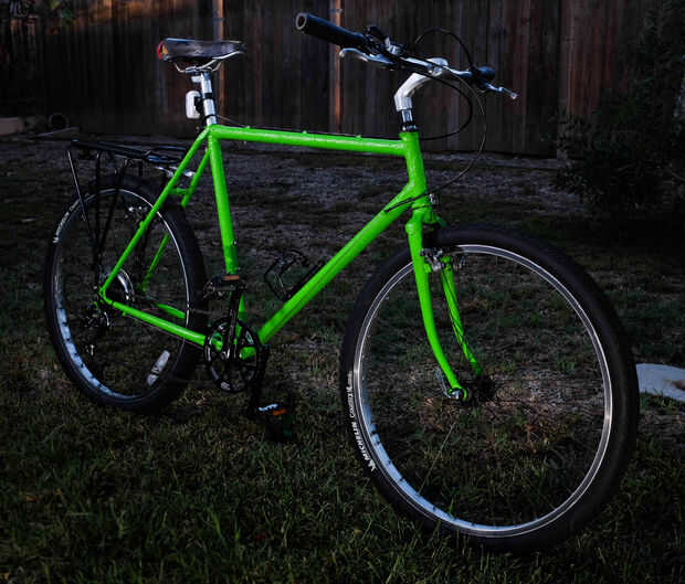 Nota: es la primera vez nunca he pintado una bicicleta así que hice mi parte justa de los errores que yo esperaba. Estoy pintando en bicicleta de copia de seguridad del viajero, el batidor que utilizo cuando mi bici en la tienda o cuando hay mal tiempo, por lo que no estaba muy preocupado por conseguir un trabajo de pintura perfecto. Mi objetivo era darle mi mejor esfuerzo, recopilar todas mis lecciones aprendidas, y determinarlo debo aplicar esta misma capa a mi mucho más bonito-bicicleta de carretera por el camino de.