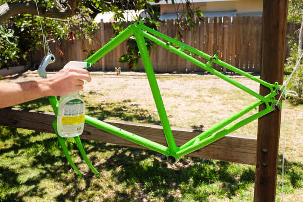 Nota: He dejado la bici colgada en mi cubierta trasera para 3 días después de la pintura porque continuó olor a solvente.
