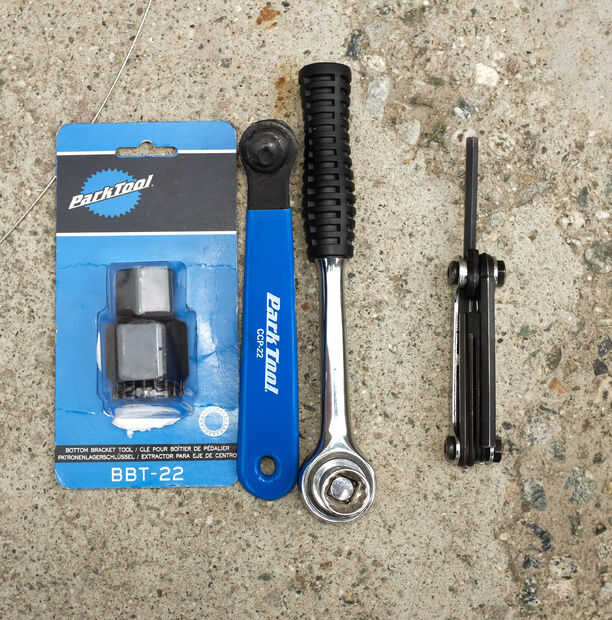 - Retire el brazo de biela y pedalier. Esta parte siempre me intimidó, pero después de ver este video de youtube que demuestra el proceso fue una brisa.