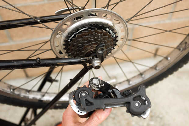 - Quitar la cadena, ya sea con una bicicleta herramienta de cadena o si tiene un enlace rápido un enlace con las manos, o un par de pinzas si se pega. (Nota: cadenas de eslabón son increibles)