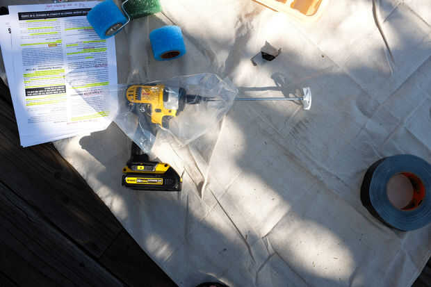 - Mantenga la tapa en la lata y salir de una cubeta de pintura (no incluida)