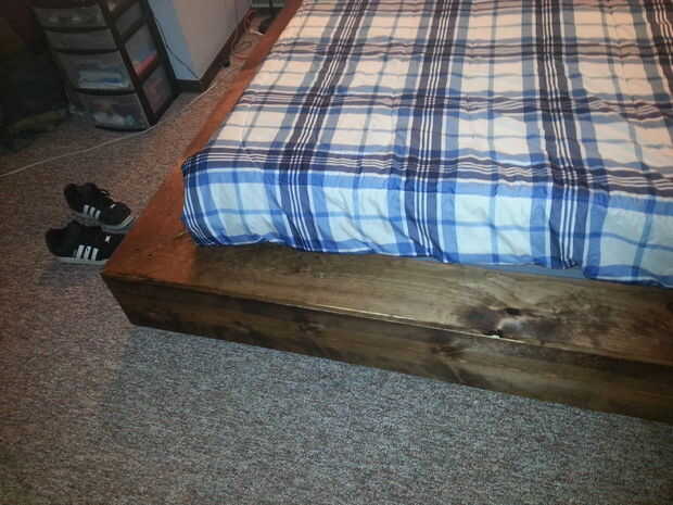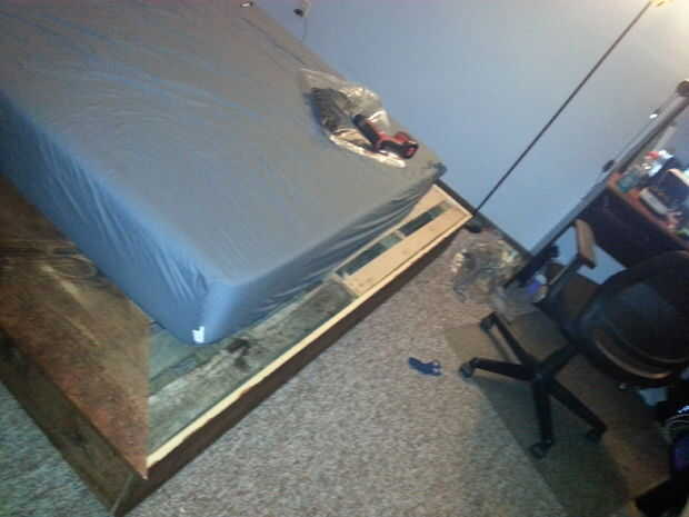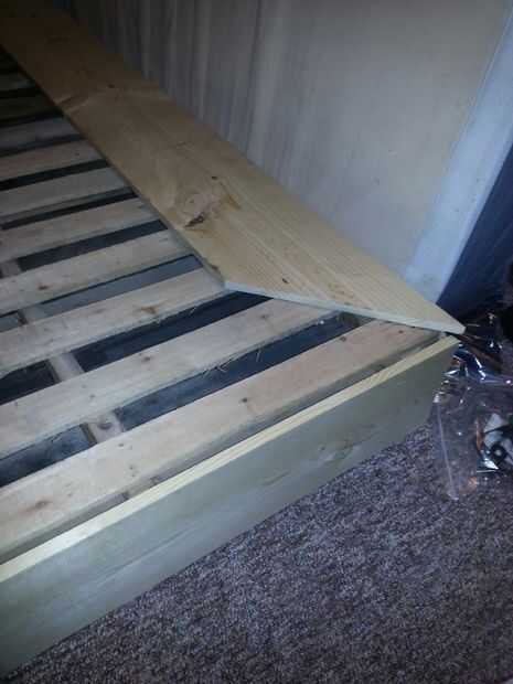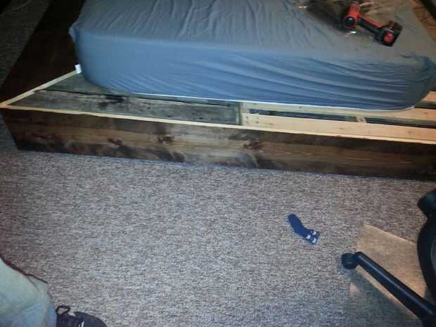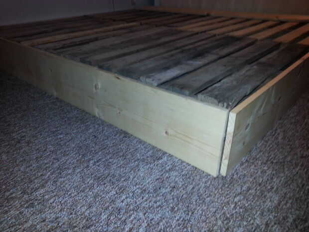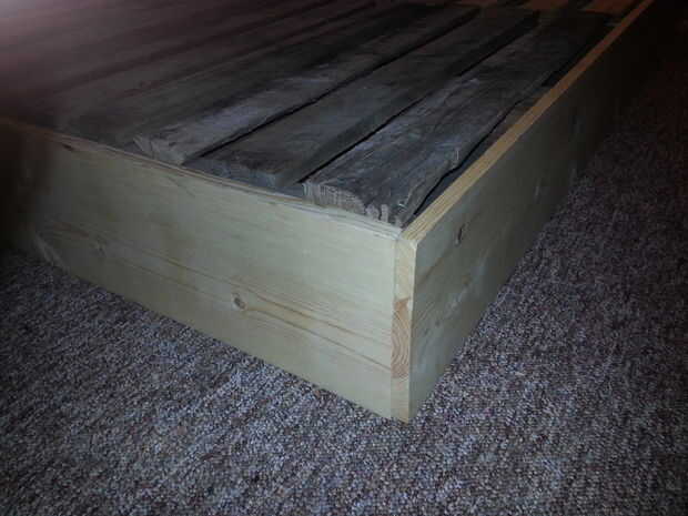 plataformas para verlo que parecía. No estaba impresionado. pero algunos consejos intento conseguir palets que son iguales o el ajuste junto bien tuve que jugar al Tetris con la mía. Mina recogí en este centro de reciclaje en la ciudad. Luego fui a menards recogida 3 1x12x8s y 3-1 x 10 x 8 s. el 1x10s alrededor de la parte de afuera de las paletas y el 1x12s encima de las plataformas expuestas. Corté la cuz diagonalmente a las esquinas creo que queda mejor pero tu choicem de justicia