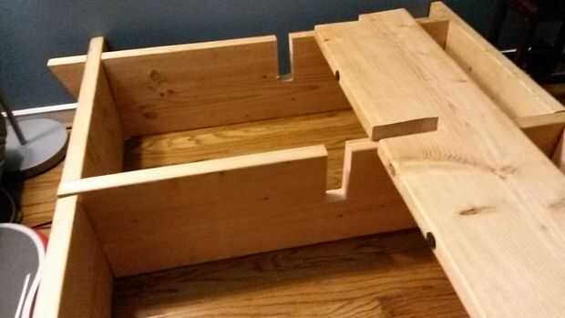 Si las dimensiones son correctas y corte las juntas más anchos que el espesor de la madera, estos bebés deben deslizarse en ellos no hay problema. Imagen 1 se pueden ver las ranuras alinean. Usted debe ser de desplazamiento la madera en el orden indicado en el paso 1 con el bosquejo / sin embargo lo hiciste. Viola! han construido la base de la cama sin utilizar hardware!