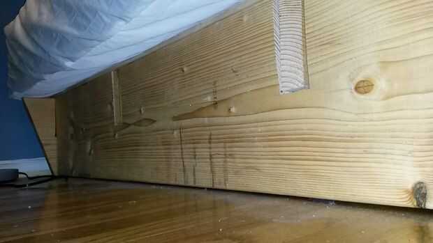 Usted podría pensar "voy sag con nada apoyarla en el borde". Tienes razón pero solo hice 4" saliente por lo que cuando me siento en el borde, no es suficiente a caer significativamente. También depende de tu colchón, camas de agua probablemente no funcionarán.