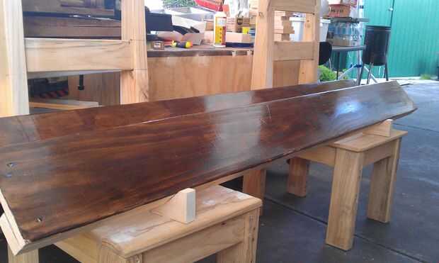 Y luego brillo a base de agua de Cabots - una capa, arena ligera, monocapa, luz arena, después una capa habían diluida al 50% con agua.