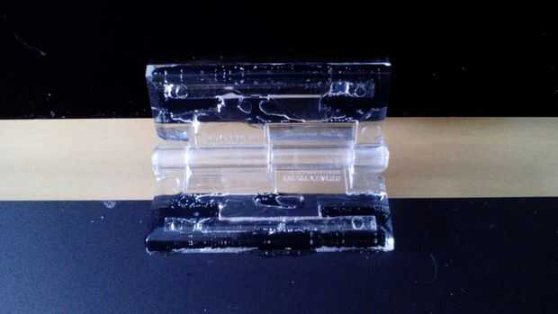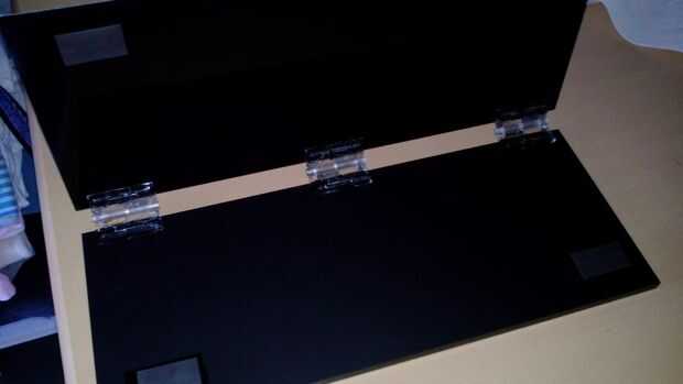 Así que decidí pegar 3 bisagras de acrílico en la base.