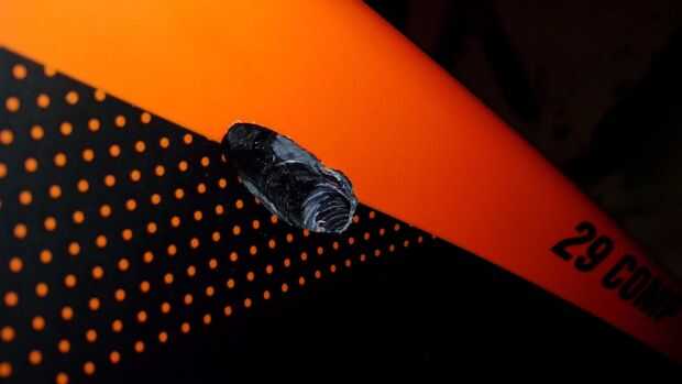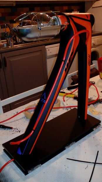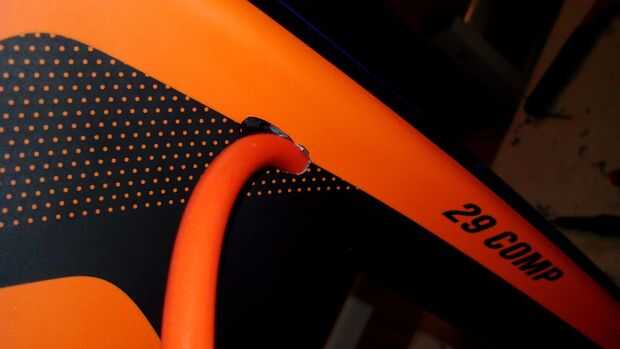 Para un toque final, usé otra vez un orificio del cable de freno original pasar un pedazo de cuerda, a lo largo del tubo inferior a otro agujero que había perforado.