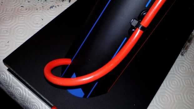 En la cañería cuerda adosada una energía negra enchufe y un interruptor