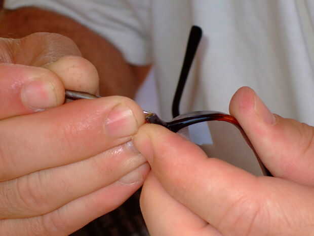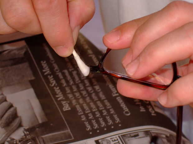 Marco de la lente plástica de reparación con hilo y Pegamento (3 / 12 paso)