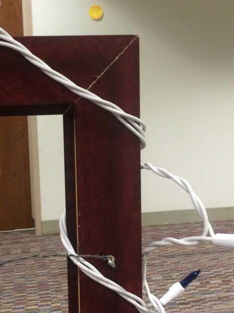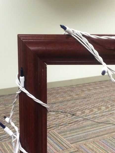 - Una vez que han asegurado adecuadamente sus luces alrededor de la parte superior izquierda del marco, en el mismo patrón, hacen su camino a lo largo de la parte superior del marco.